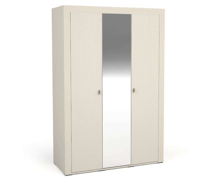MOSSA 02 – tai moderni ir elegantiška trijų durų 137 pločio drabužių spinta su lentynomis. Vidurinės durys turi didelį veidrodį, kuris vizualiai padidina erdvę ir suteikia interjerui prabangos. Spinta pasižymi praktišku išdėstymu, leidžiančiu patogiai sudėti drabužius ir kitus daiktus.
