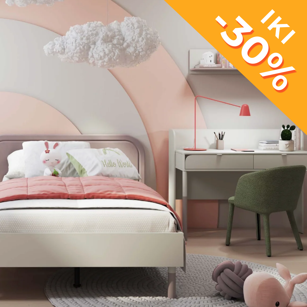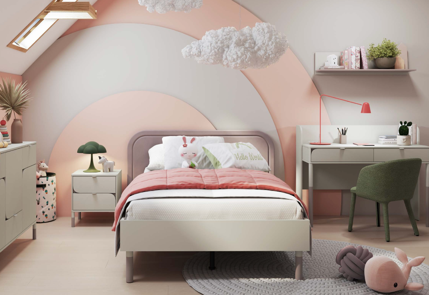 Kiekvienas elementas apgalvotas iki smulkiausių detalių: erdvi spinta su patogiu daiktų sudėjimu, funkcionalus rašomasis stalas su stalčiais, ergonomiškos lovos su galimybe įrengti daiktadėžę po lova. Aukštos kokybės medžiagos užtikrina ilgaamžiškumą, o universalus stilius lengvai derės prie skirtingų interjerų.