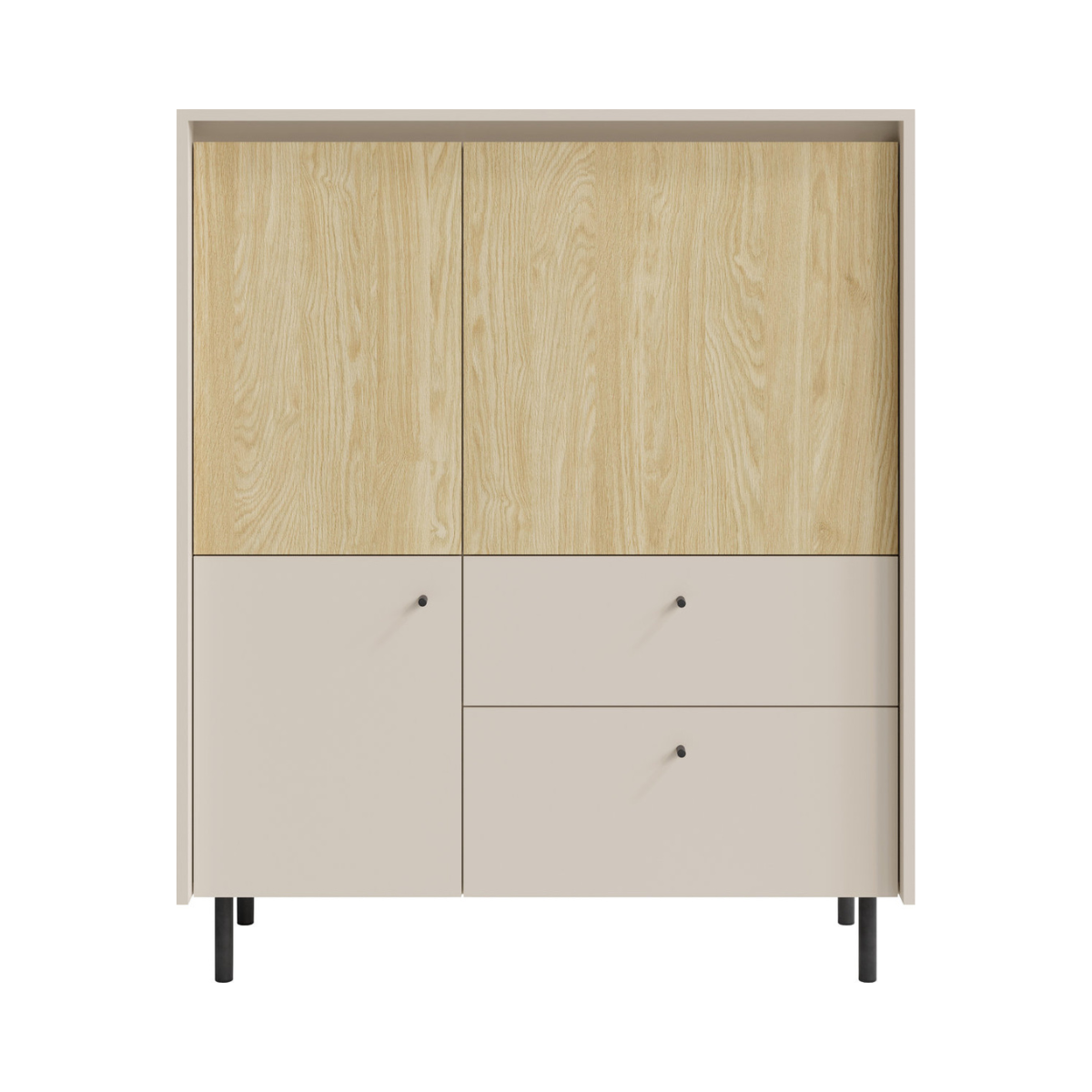 Komoda MALTA ML-1 – tai stilingas ir funkcionalus sprendimas svetainei ar valgomajai, pagamintas pagal šiuolaikinę minimalistinę estetiką. Kontrastas tarp smėlio spalvos korpuso ir fasadų, imituojančių alyvuogių ąžuolą, sukuria jaukumo ir vizualaus lengvumo pojūtį, tuo pačiu lengvai įsiliejantį į bet kokį interjerą.