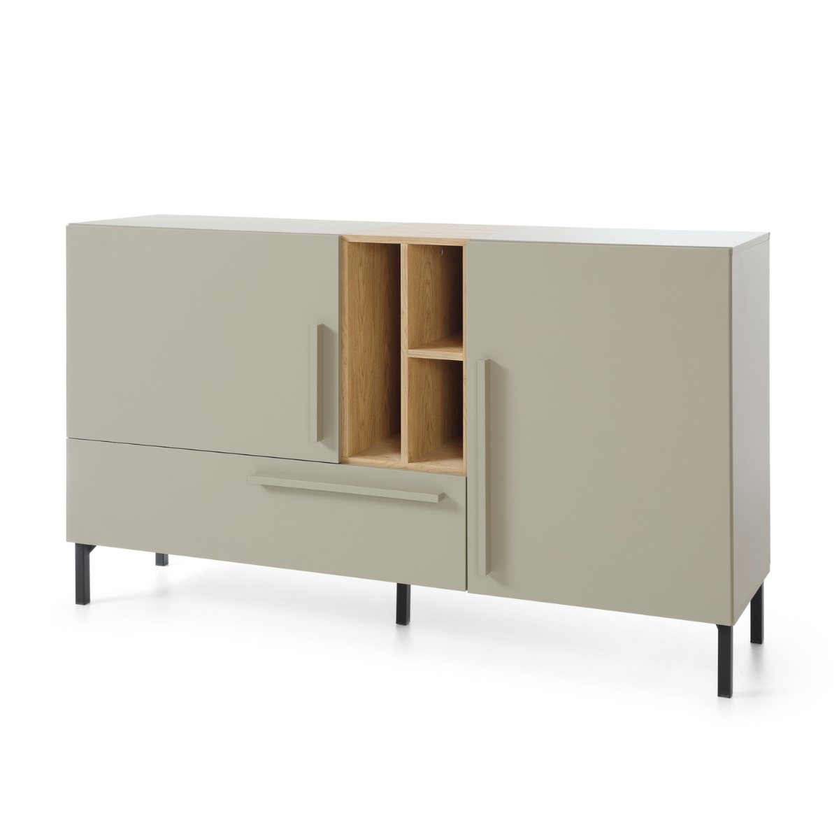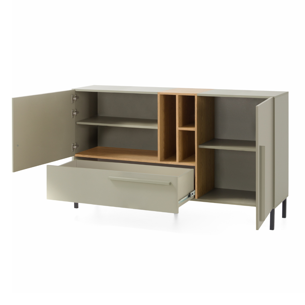 Komoda SERGIO SE-6 yra stilingas ir funkcionalus sprendimas šiuolaikiniam interjerui. Jos lakoniškas dizainas su centre esančia atvira lentyna puikiai dera su švelniu komodos atspalviu.