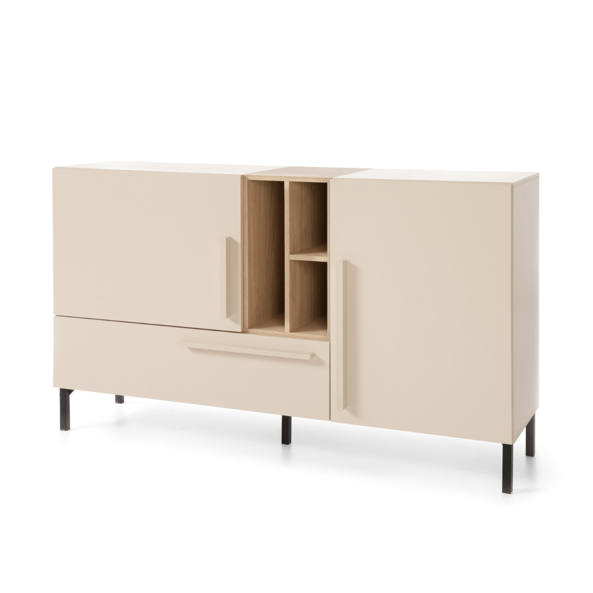 Komoda SERGIO SE-6 yra stilingas ir funkcionalus sprendimas šiuolaikiniam interjerui. Jos lakoniškas dizainas su centre esančia atvira lentyna puikiai dera su švelniu komodos atspalviu.