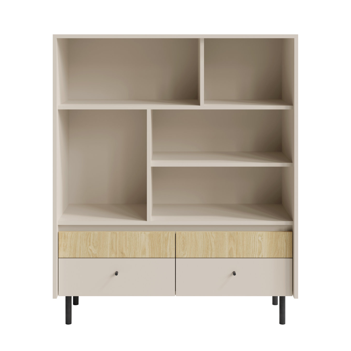 Idealiai tinka tiek svetainei, tiek kabinetui ar miegamajam – joje patogu laikyti knygas, aksesuarus, dokumentus ir dekoratyvinius elementus. Stilingos juodos kojelės suteikia konstrukcijai lengvumo ir pabrėžia modernaus modelio charakterį.