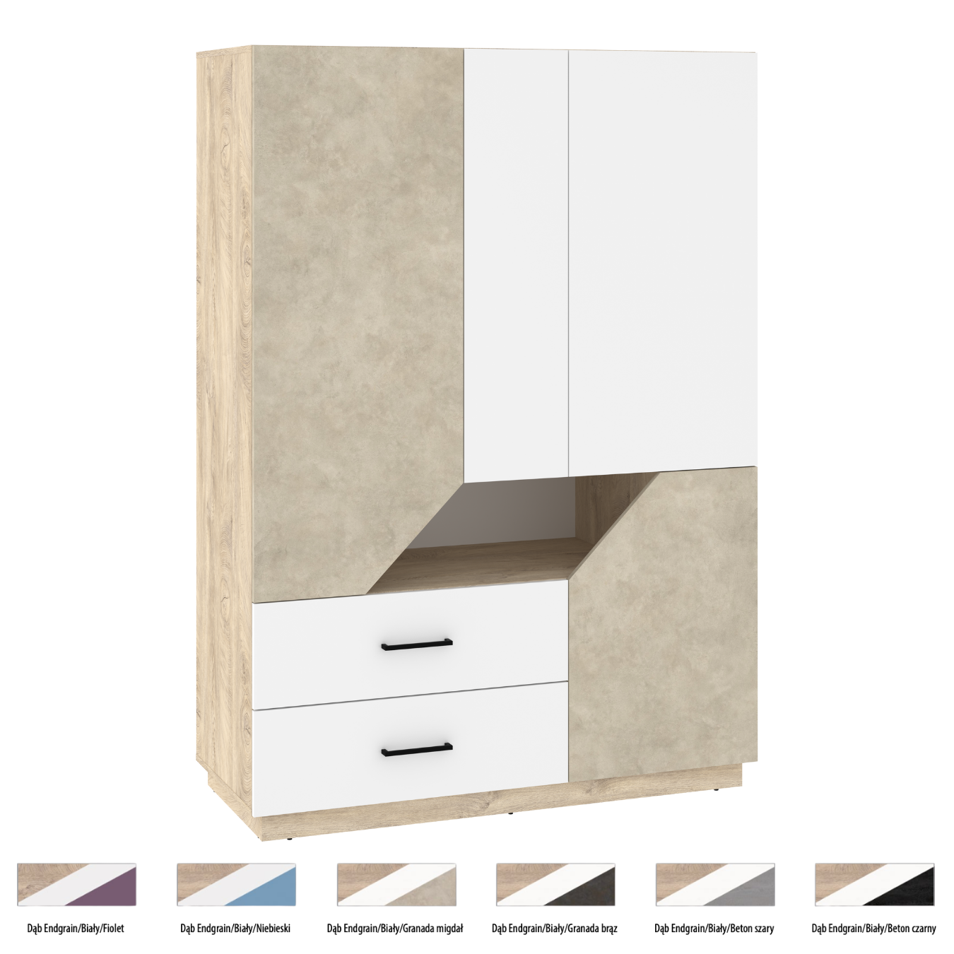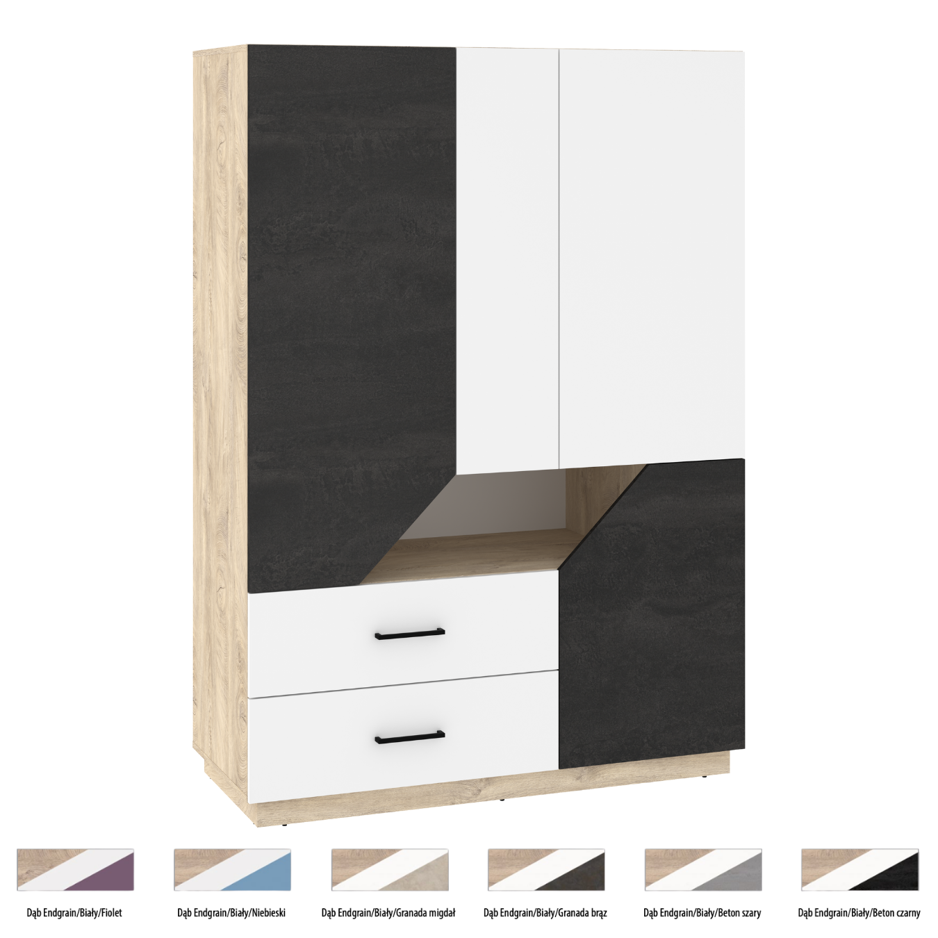 Šie modernūs baldai pasižymi švariomis, tiesiomis, aiškiomis linijomis. O jas pagyvina ir pabrėžia modernumą medžiagų deriniai, įvairios detalės, šiuo atveju modernumą pabrėžia baldinių medžiagų spalvos - naudojami du ar daugiau spalvų deriniai.