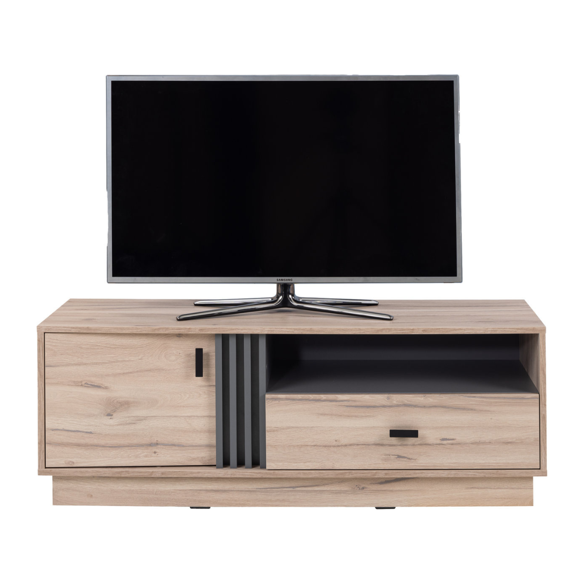 RTV spintelė Allmo AL-5 praktiškas ir stilingas sprendimas, skirtas TV zonai įrengti moderniame interjere. Lakoniškas dizainas su dekoratyviniu vertikaliu įdėklu, patogios nišos ir stalčiai užtikrina ne tik tvarką, bet ir estetinį vaizdą.