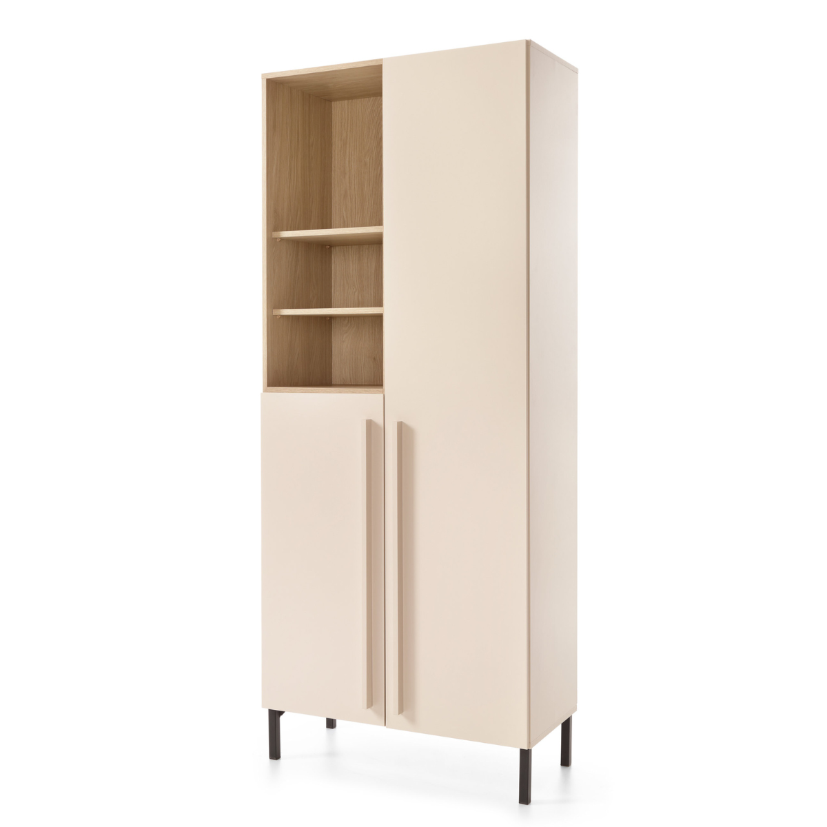 Viršutinė dalis yra atvira, ąžuolo spalvos mediena, sukuria jaukią atmosferą, o uždaros dalys su varstomomis durelėmis leidžia paslėpti viską, kas nereikalinga.