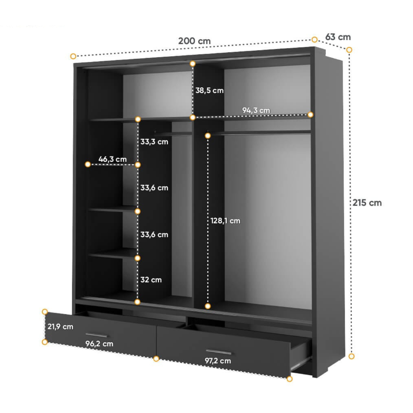 Spinta ARTI AR-08 su veidrodžiais 203 (dąb stirling)