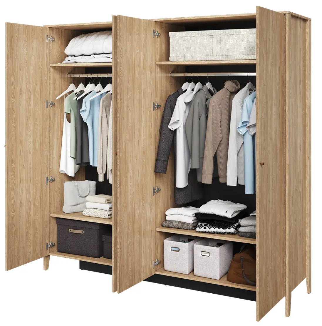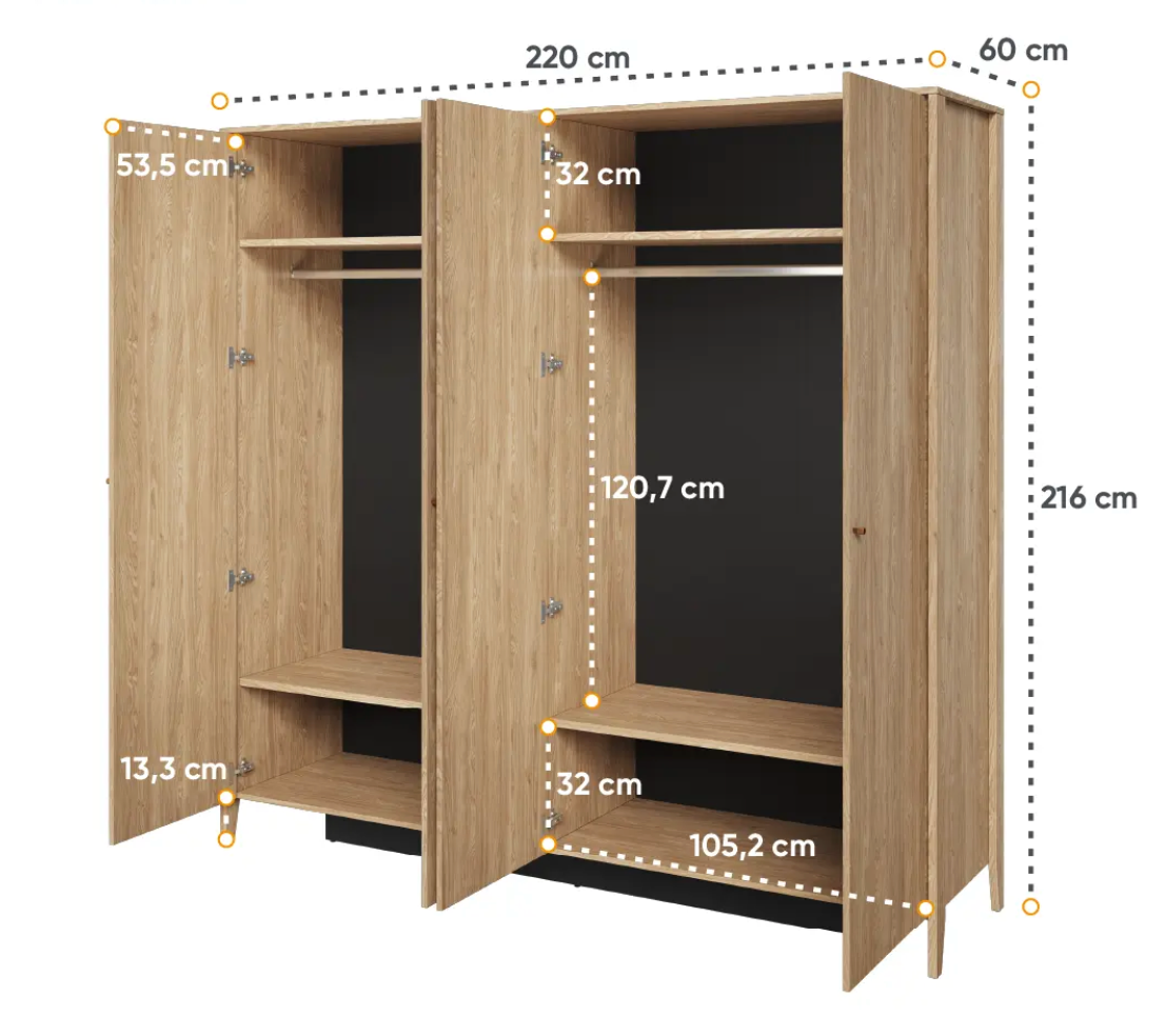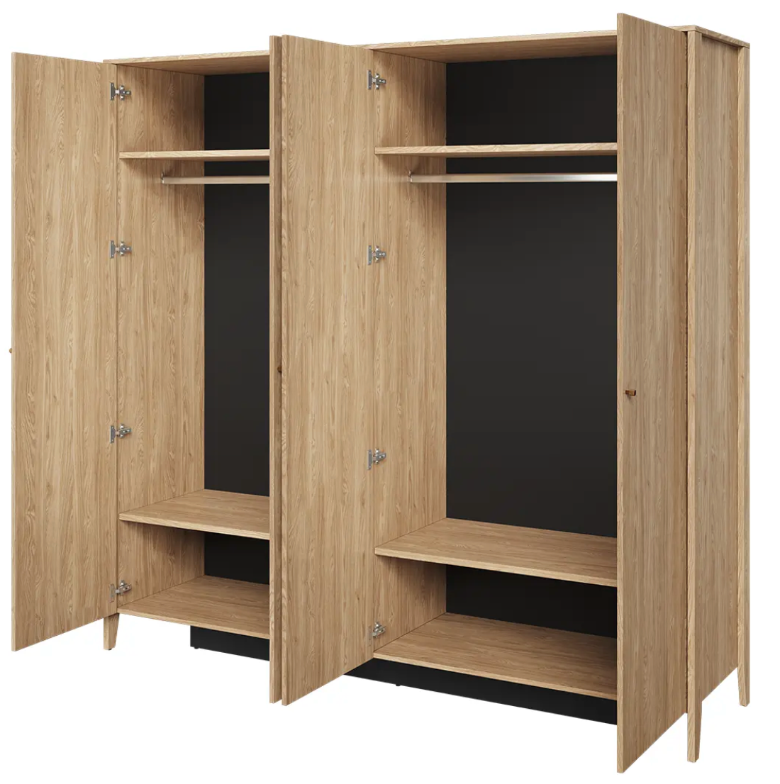 Spintos viduje yra du strypai pakaboms kabinamiems rūbams ir lentynos kitiems drabužiams laikyti, todėl drabužių, patalynės ir aksesuarų laikymas gali būti maksimaliai patogus. Dėl šviesios spintos spalvos, ją lengva derinti su kitais šios kolekcijos baldais, bei lengvai įsilieja į skandinavišką ar šiuolaikišką interjerą.