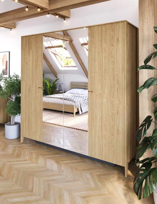 Spinta COZY CZ-01 yra stilingas ir praktiškas sprendimas šiuolaikiškam miegamajam. Spinta turi 4 varstomas durys su dideliu veidrodžiu, kuris ne tik vizualiai išplečia erdvę, bet ir leidžia patogiau naudotis kasdien.