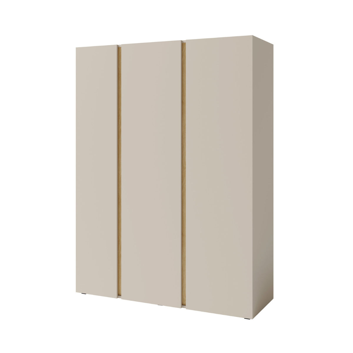 Minkštos linijos, nereikalingų detalių nebuvimas ir integruotos vertikalios rankenos suteikia spintai modernų minimalistinį išvaizdą, kuris lengvai įsilies į bet kokį interjerą. Natūralūs medžio tekstūros akcentai suteikia šilumos ir jaukumo.