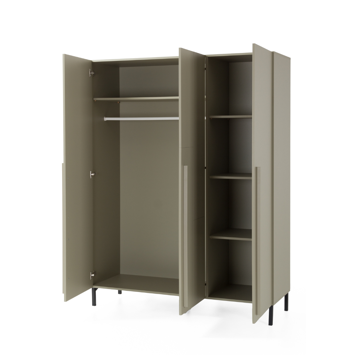 Dėl gerai apgalvotos vidinės erdvės spinta patogu naudotis tiek drabužiams ant pakabų, tiek daiktams, sudėtiems į lentynas, laikyti - vienoje pusėje yra lentynos, kitoje - pakaba ir viršutinė lentyna.