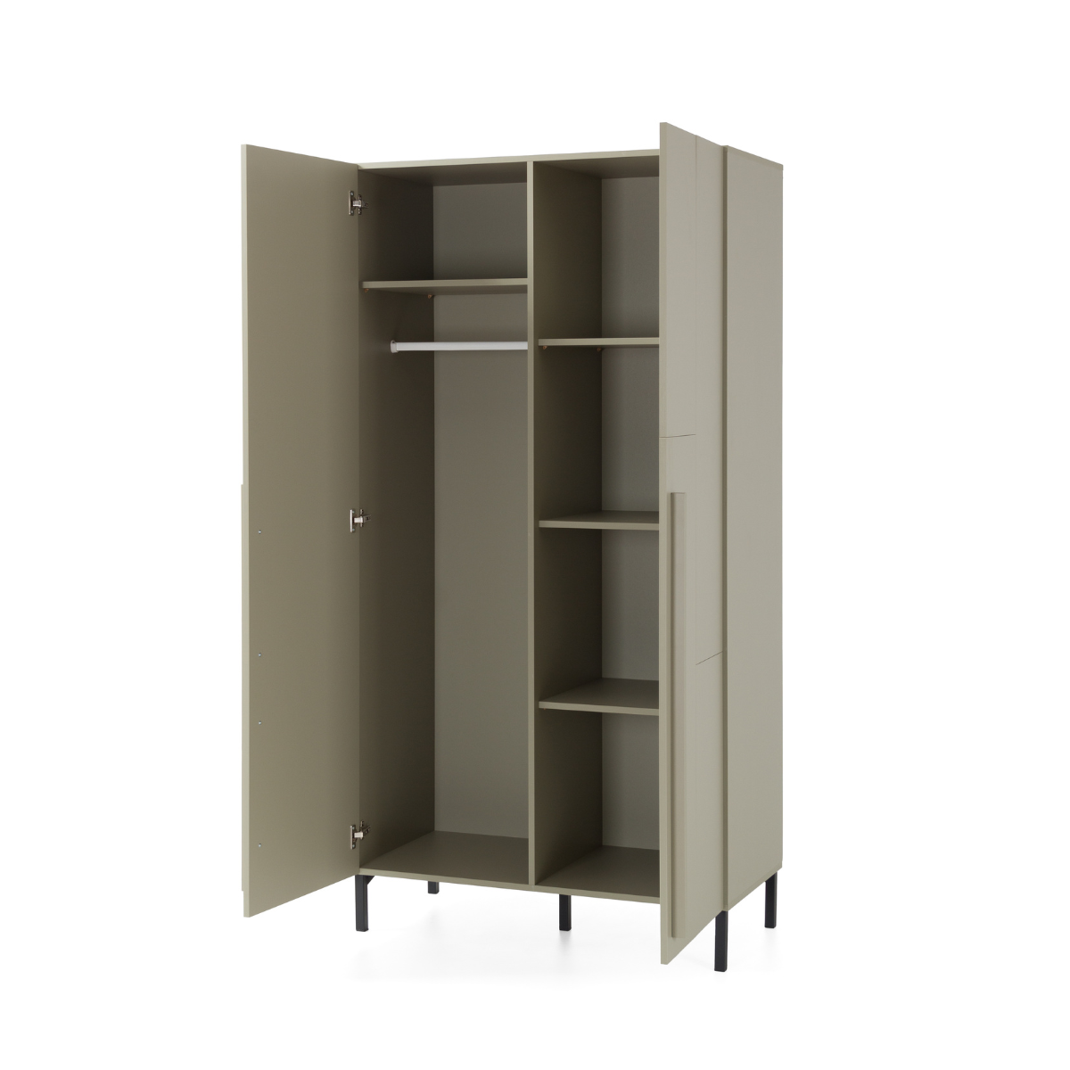Dėl gerai apgalvotos vidinės erdvės spinta patogu naudotis tiek drabužiams ant pakabų, tiek daiktams, sudėtiems į lentynas, laikyti - vienoje pusėje yra lentynos, kitoje - pakaba ir viršutinė lentyna.
