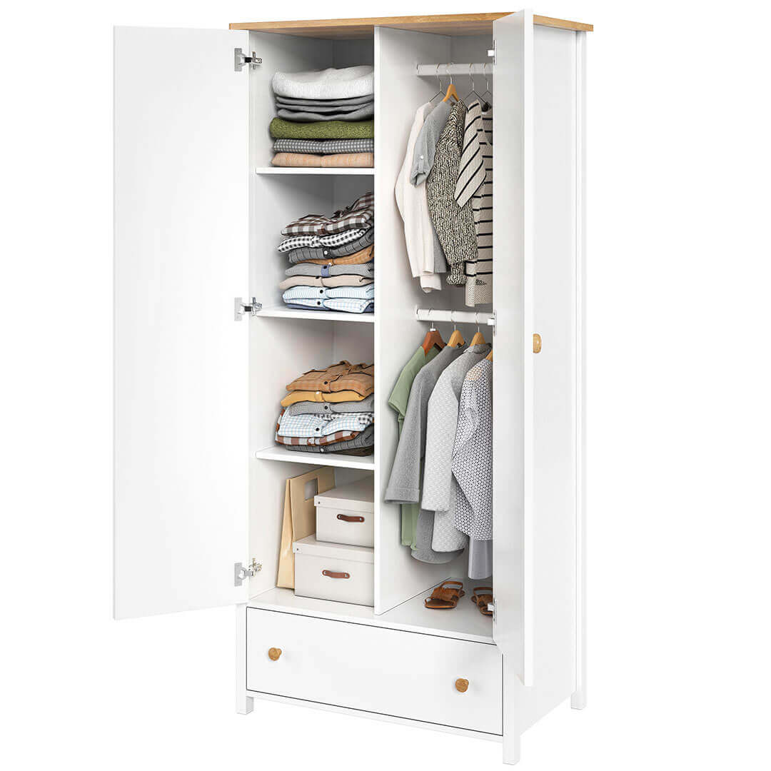 Spintos vidaus išplanavimas leidžia patogiai organizuoti drabužių, aksesuarų ir kitų daiktų laikymą. STORY kolekcijos spintas galima lengvai derinti su kitais baldų baldais, taip sukuriant vientisą ir gerai apgalvotą erdvę.