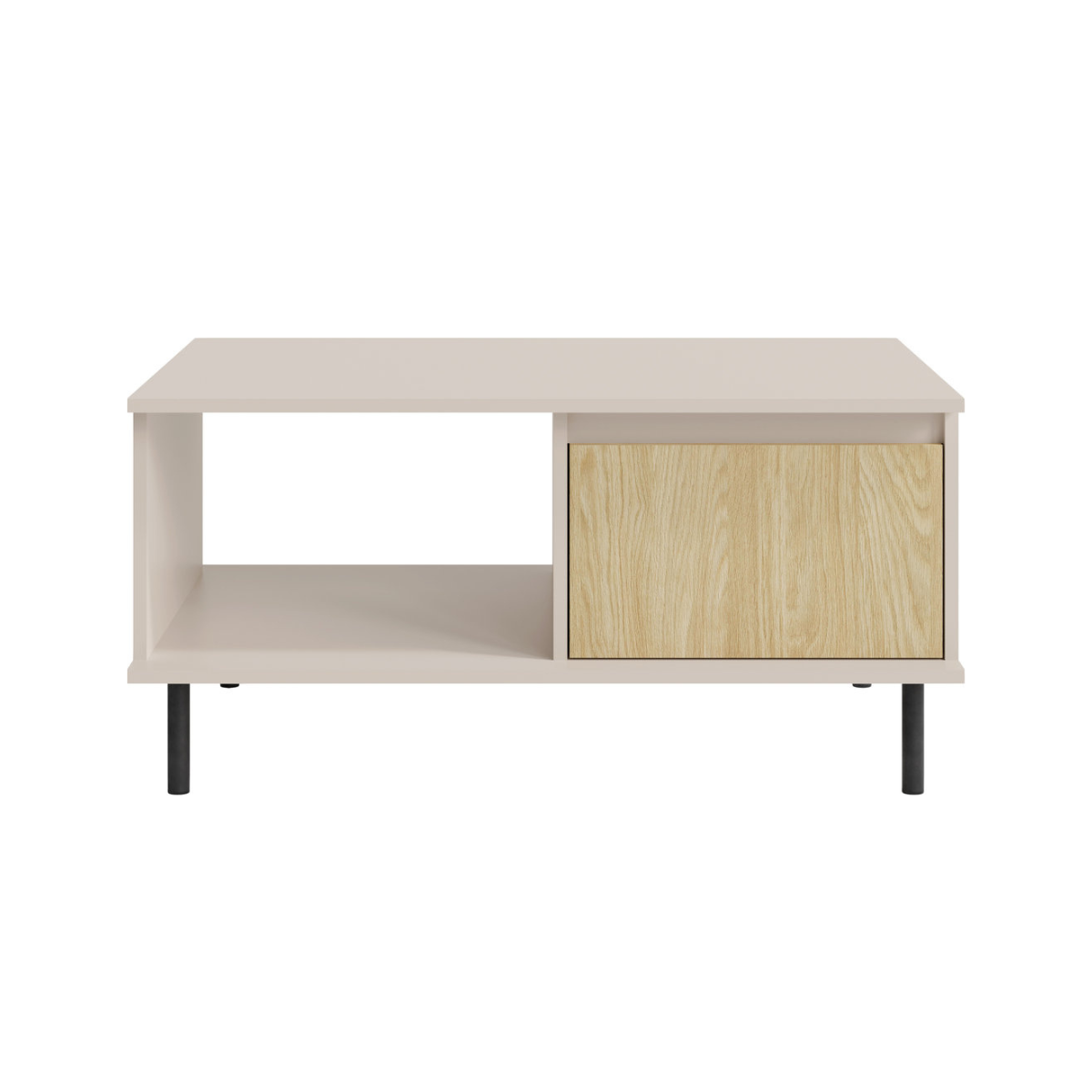 Staliukas turi atvirą nišą žurnalams ar pultams ir uždarą skyrių su durelėmis, leidžiančias paslėpti smulkmenas ir palaikyti tvarką.